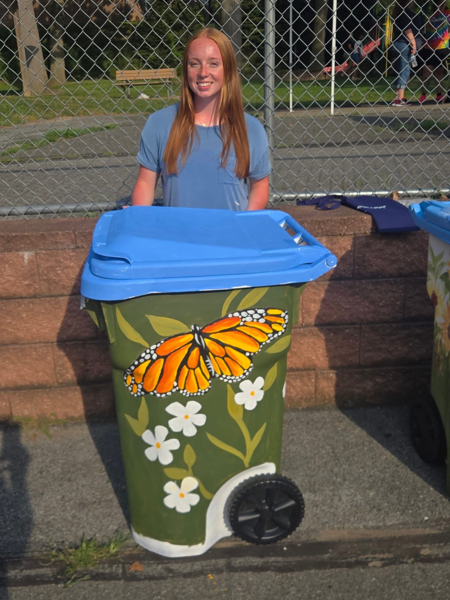 Painted recycling bins are the gateway intervention—visible, friendly, non-threatening.